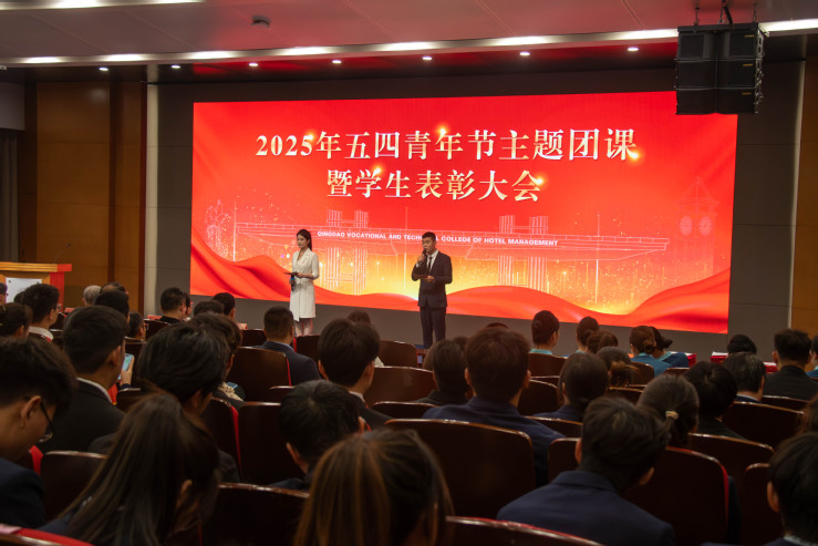 5月15日下午,青島酒店管理職院2025年五四青年節主題團課暨學生表彰大會在學術報告廳舉辦。