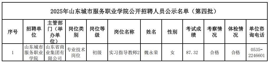 2025年山東城市服務職業學院公開招聘人員公示名單(第四批):
